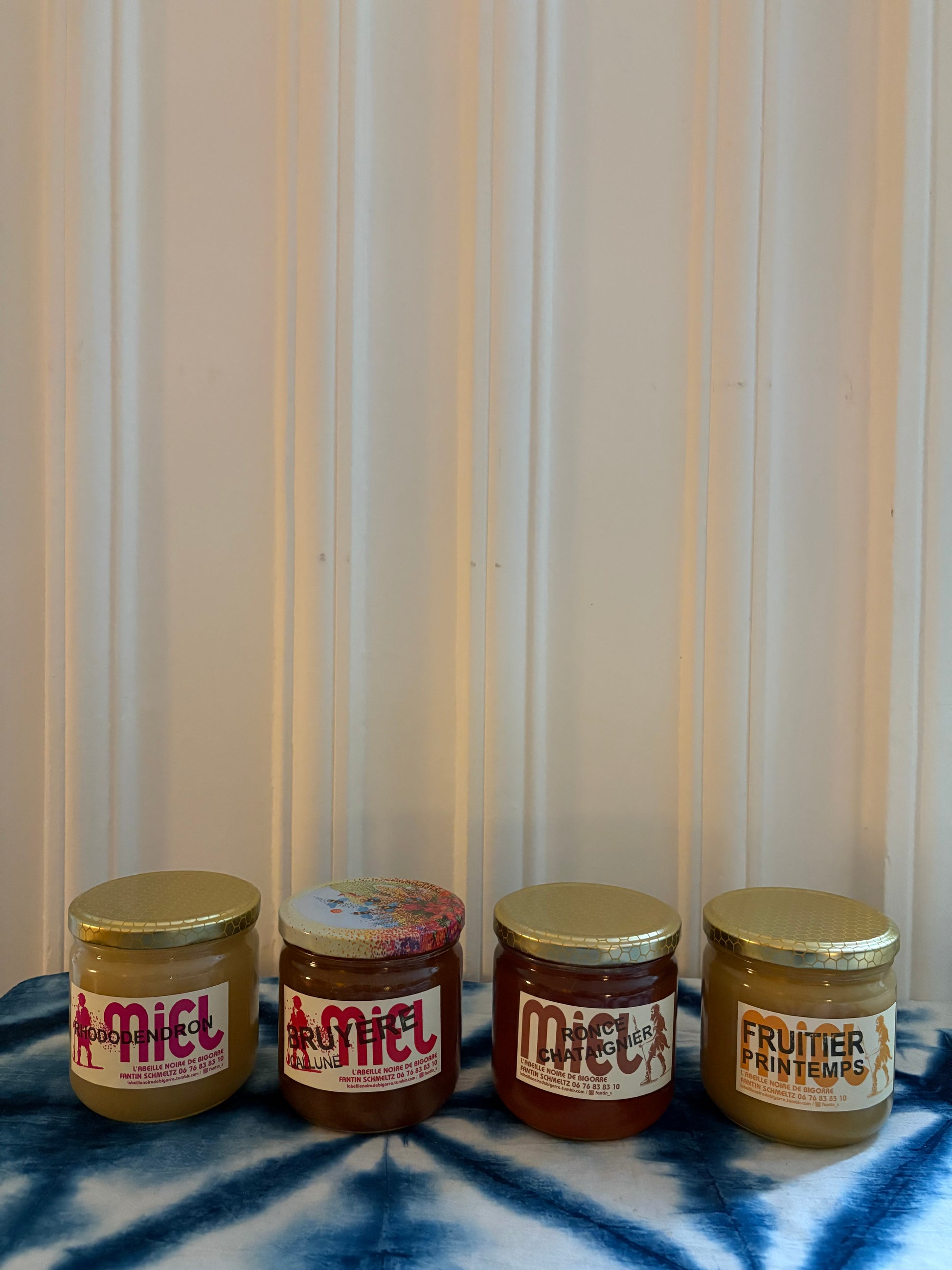 In your order, please specify which type of honey you would like to order. We have Bruyere, Rhododendron, Fruitier Printemps, et Ronce-Chataignier. They all have their own unique aroma, flavours and benefits.