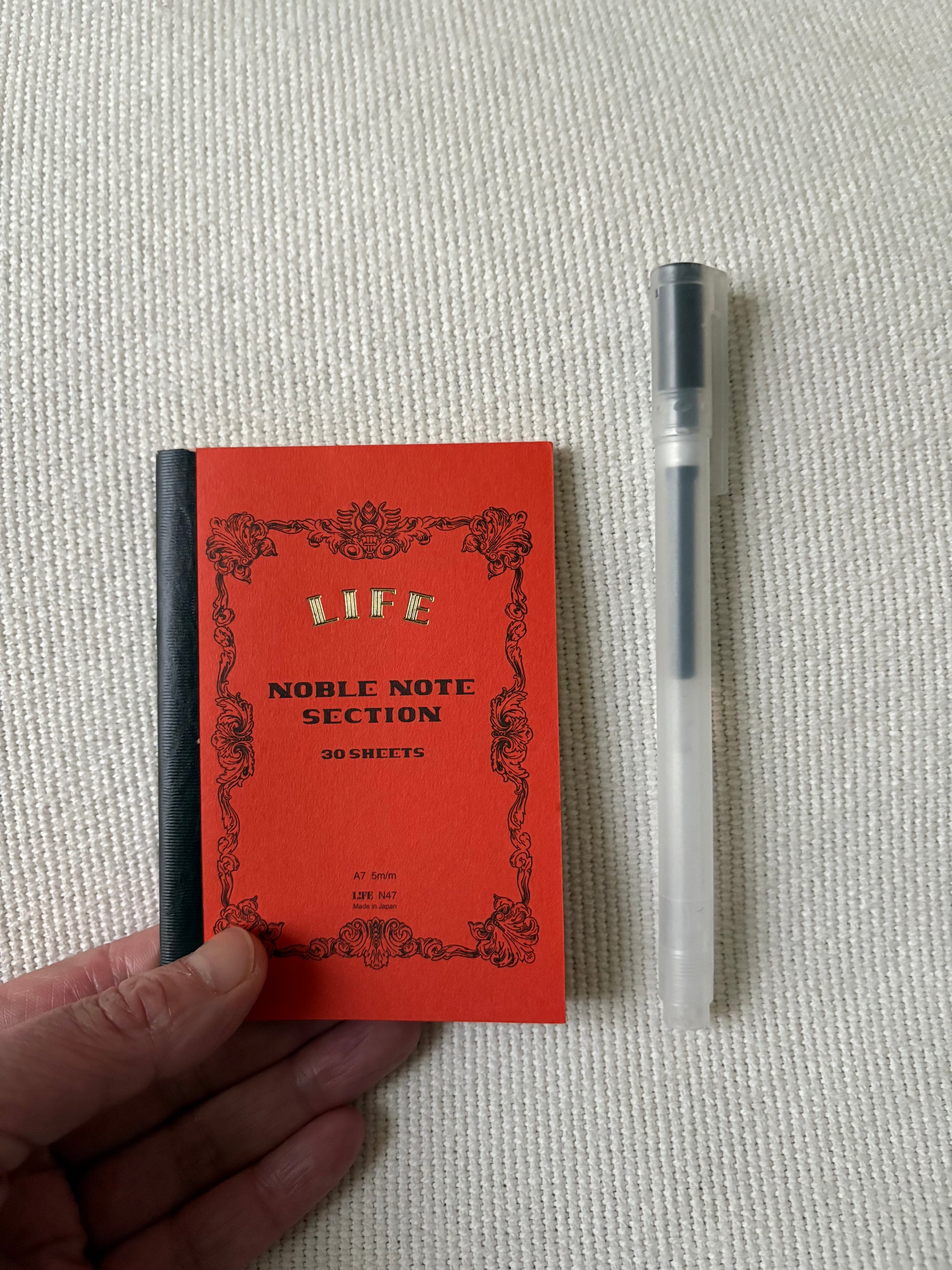 La papeterie LIFE a été fondée en 1946 sous le nom de Saito Shoten. En 1963 la société change de nom pour devenir Life Co. LIFE est tres attachée a la qualité, elle ne privilégie pas la production de masse, mais mise sur l’artisanat. Les carnets Noble, sont parmi les produits phares de la marque. Ces carnets utilisent un papier d’écriture original développé en partenariat avec des papetiers pour obtenir un texture lisse, une bonne absorption de l’encre et une couleur crème agréable. J’utilise ces petits carnets depuis longtemps, jai une carnet dans tous mes sacs. Légère et facile à apporter tous les jours…